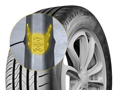 Фирменные индикаторы износа облегчают контроль состояния шин в ключевых точках: по окружности; между внешней и внутренней сторонами рисунка протектора; между центральной и плечевой зонами.